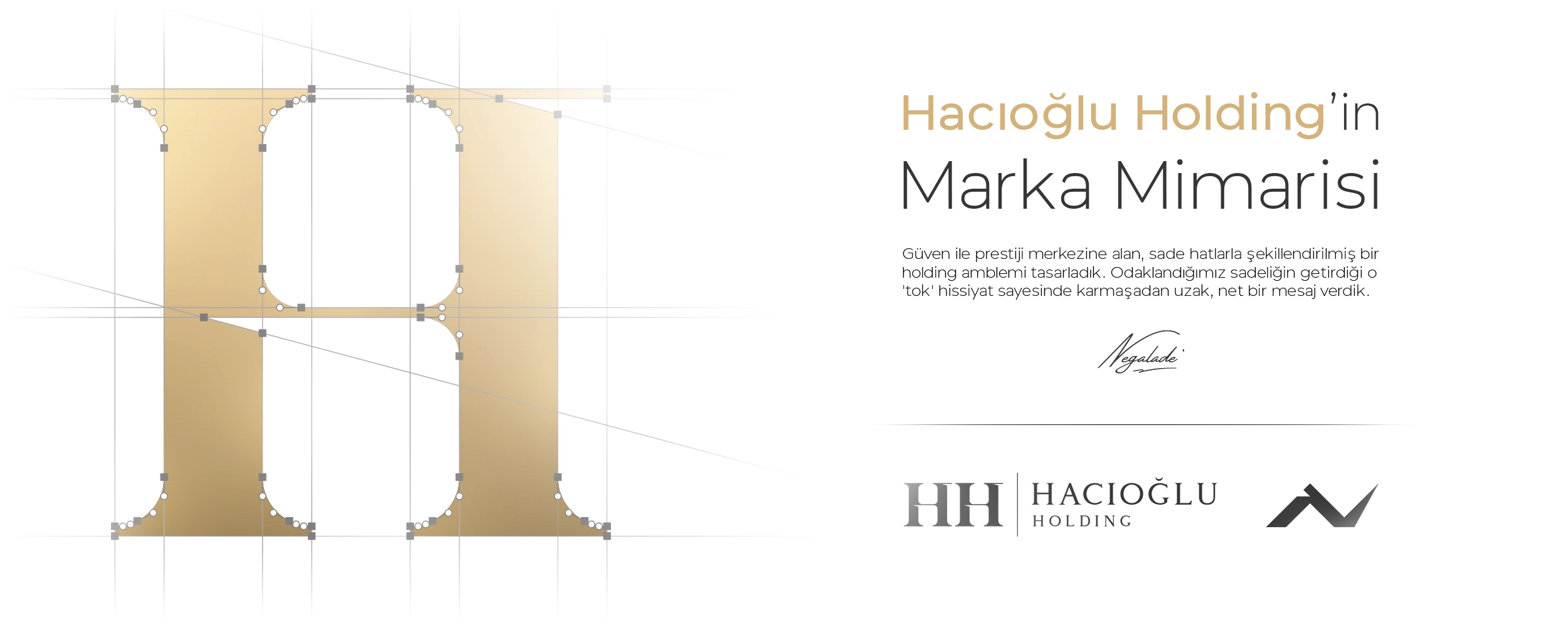 Hacıoğlu Holding’in köklü yapısını ve geleceğe yönelik vizyonunu modern bir estetikle buluşturmak için yola çıktık. Tasarım sürecimizin temelinde, markanın sektördeki otoritesini hissettirecek, ağırbaşlı ve minimal bir form yaratmak yatıyordu. Holdingin kararlı duruşunu görsel bir dile çevirirken, hem yerel hem de küresel pazarda net bir şekilde okunabilecek güçlü hatlara odaklandık.